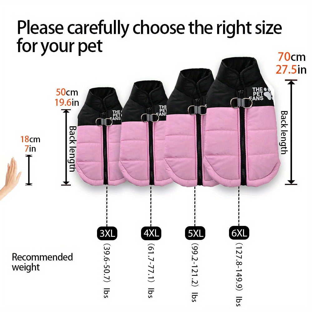 Veste polyester 100% pour chien, conçue pour toutes les saisons (automne, hiver, printemps). Fermeture éclair complète pour un enfilage facile, col imprimé motif pattes. Convient aux chiens de petite, moyenne et grande taille. Tissu tissé léger et durable.